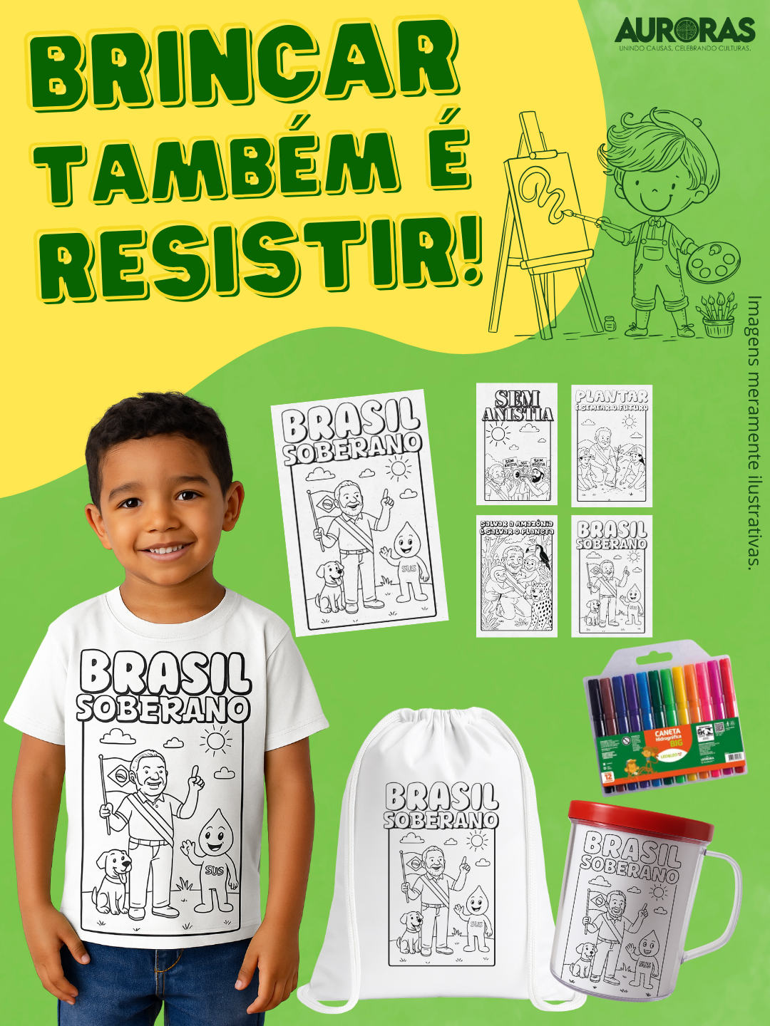 O Kit para Colorir Brasil Soberano é muito mais do que diversão: é um convite para as crianças explorarem a criatividade, aprenderem brincando e se conectarem com valores de cidadania, cuidado com o planeta e amor pelo Brasil. 💚💛